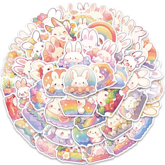 50pcs Cute Cartoon Rainbow Rabbit Stickers
