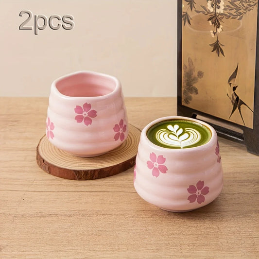 2pcs Set 160ml Cute Cherry Blossom Ceramic Tea Cup Pink / White